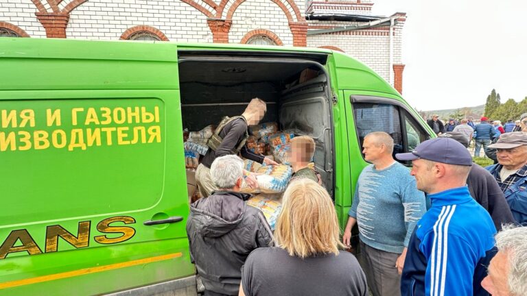 For the volunteers, the task is simple. Get in a van, follow a guide to the distribution point, distribute, and then return home. However, ensuring an action as simple as food distribution depends on a more complex organization. In this case, it’s a tripartite organization. « Samaritan’s Purse » handed over the food to « Peaceful Sky of Ukraine, » which took care of storage. This Ukrainian NGO, with its extensive network, established the contact point with today’s village. Finally, a local NGO with vehicles and drivers had to be found, the responsibility to raise the funds to finance the fuel for the trip of its responsibility.