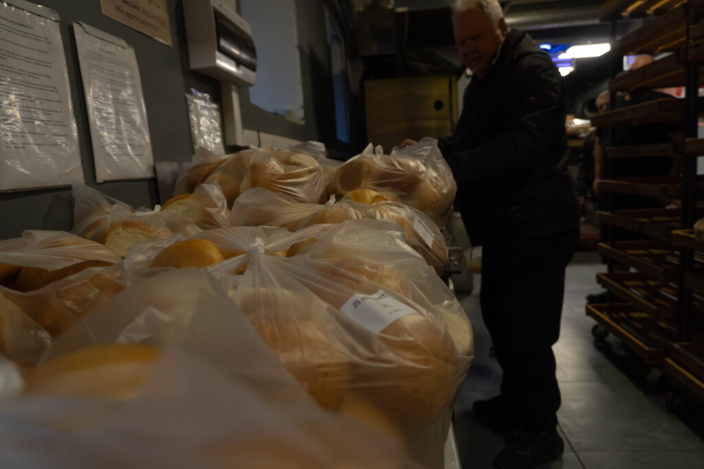 Davaii!” Sacha’s slow, warm voice echoes through the establishment. In his black puffer jacket, he calls on the other volunteers to help load the van. At the end of the long room, in the cold room around a corridor, he points out the containers to be delivered. Buckets of soup and other hearty stews are stacked in the van alongside the bags of bread. Each batch is dated and labelled. Every hospital receives a precise delivery.