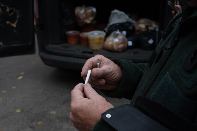 It’s early morning when Aleksandr—known as Sacha to friends—prepares his coffee. Sacha is a volunteer at Hell’s Kitchen, in Kharkiv; this volunteers’ kitchen prepares meals for both civilian and military hospitals in the city. Today, Sacha oversees deliveries.