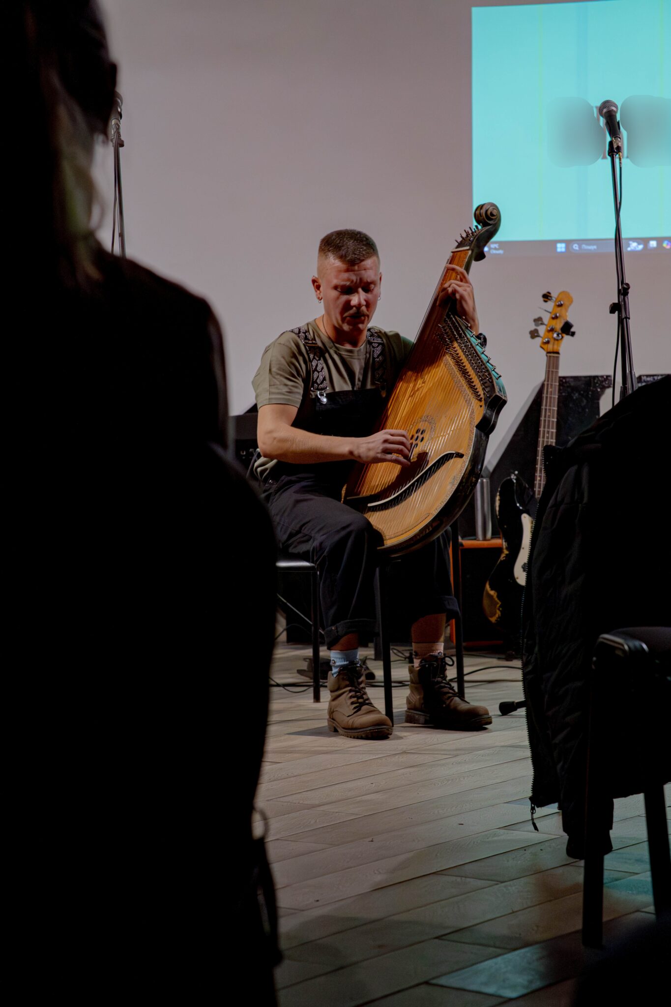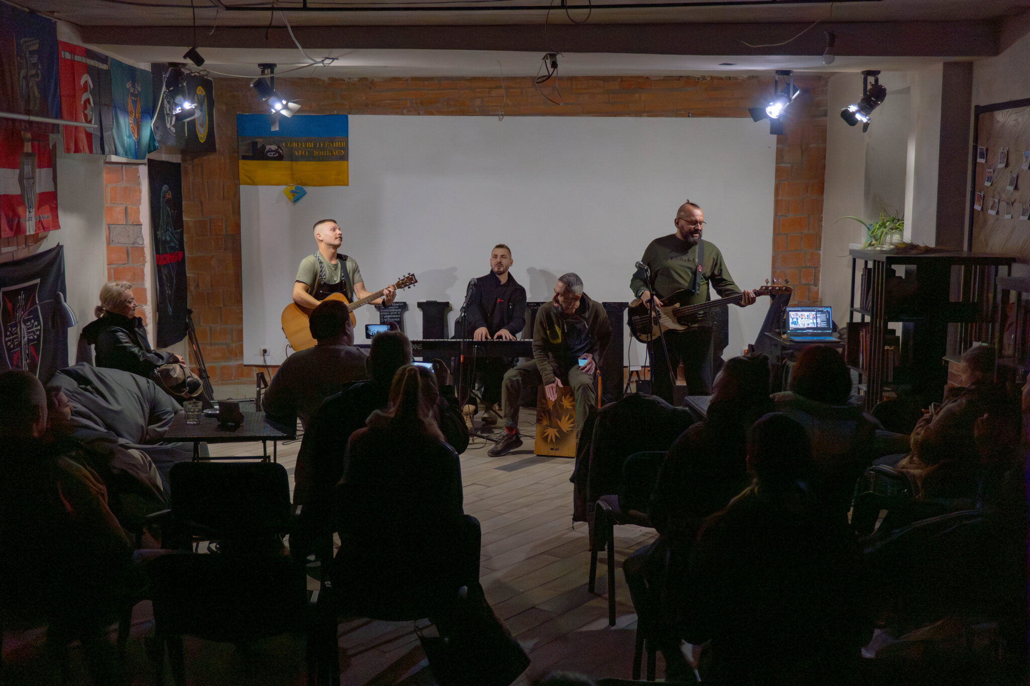 Bogdan*, Vacil*, Lev*, and Yuriï* are military musicians; tonight, they are organising a private concert. Whether in uniform or jeans, their mission is the same: to provide moral support to troops engaged in combat.